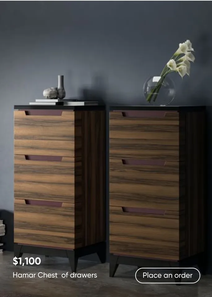 Larvik furniture can optionally be equipped with technical features, such as wireless phone charging or a USB port. To highlight this, when an option is selected, all the furniture images are updated. That is, the buyer clearly sees how the option selection will affect their furniture.